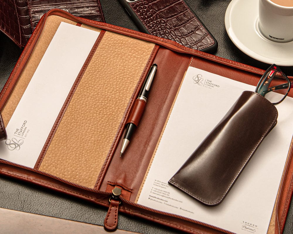 We offer an updated range of leather document folders, leather portfolios, A4 document holders, zippered leather folders, writing folders, and executive document cases — each designed to carry papers, contracts, tablets, and business essentials in style.