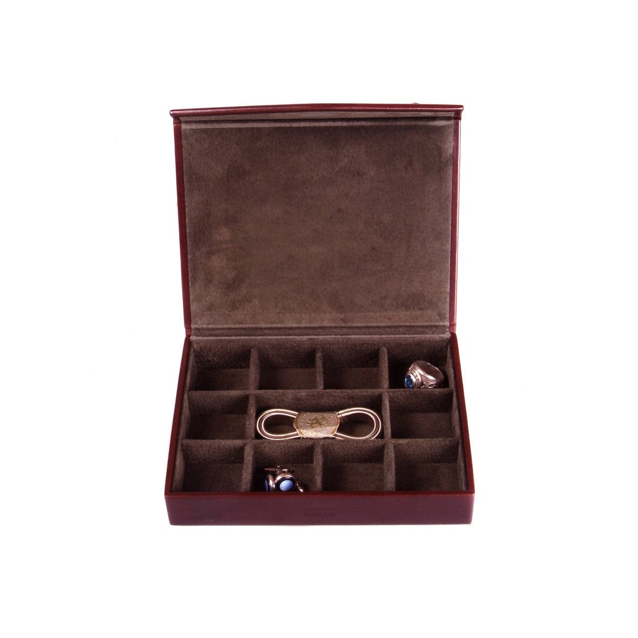 Keep all your jewellery and accessories tidy with one of SageBrown’s leather jewellery boxes. Choose from a vast array of designs and sizes with segmented compartments to help you to organise your earrings, rings, cufflinks and bracelets neatly. Handmade in fine grain leather, pebble grain or with a croc texture, choose from a variety of jewellery boxes for women and stud boxes for men that are a perfect travel accessory or displaying on a dressing table.