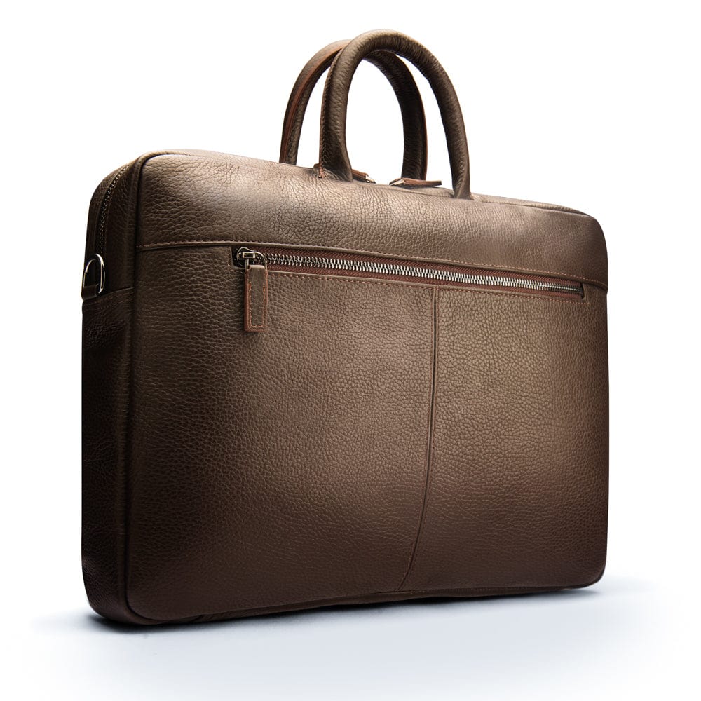Shop our extensive range of men's leather laptop bags, briefcases and business bags handmade by master craftsman from durable leather chosen for its durability, quality and feel. With premium hardware and quality zips that glide open, you can be assured you will make a lasting impression, wherever life takes you. A functional laptop bag is a professional necessity wherever you work and there’s a choice of classic colours like black, brown or tan as well as contemporary colours like blue or red in a variety of textures with stunning suede or fine leather interiors. SageBrown’s modern laptop bags have detachable, adjustable shoulder straps to make your commute effortless and switch back to a briefcase when you get to your office, meeting or event. Coordinate your business bag with a matching leather business card holder or men’s leather wallet to complement your working wardrobe.