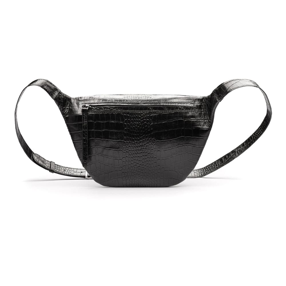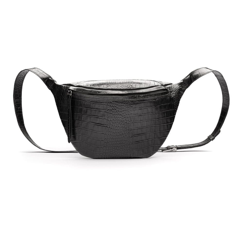 Leather 2 in 1 wallet, black croc, front
