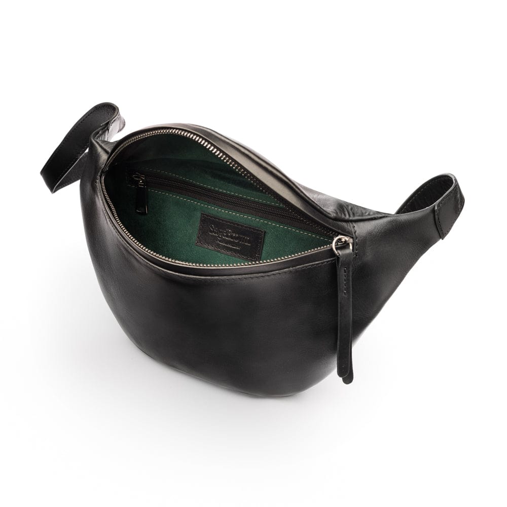 Large bridle leather breast pocket wallet 16 CC, black, inside