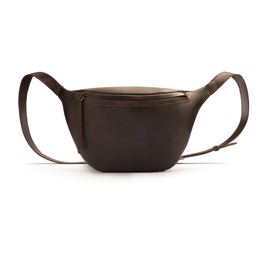 Men's burnished leather belt, brown, front