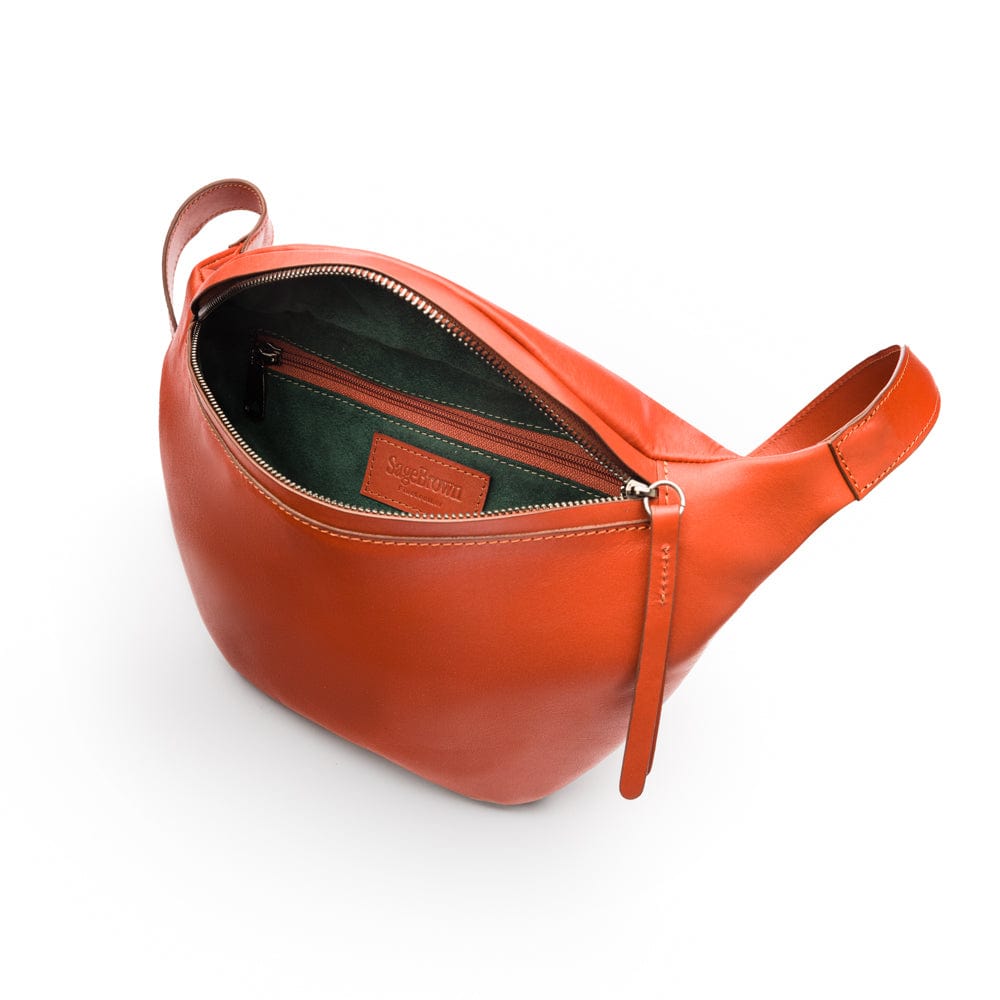 Trifold leather wallet with id, brown with orange, inside