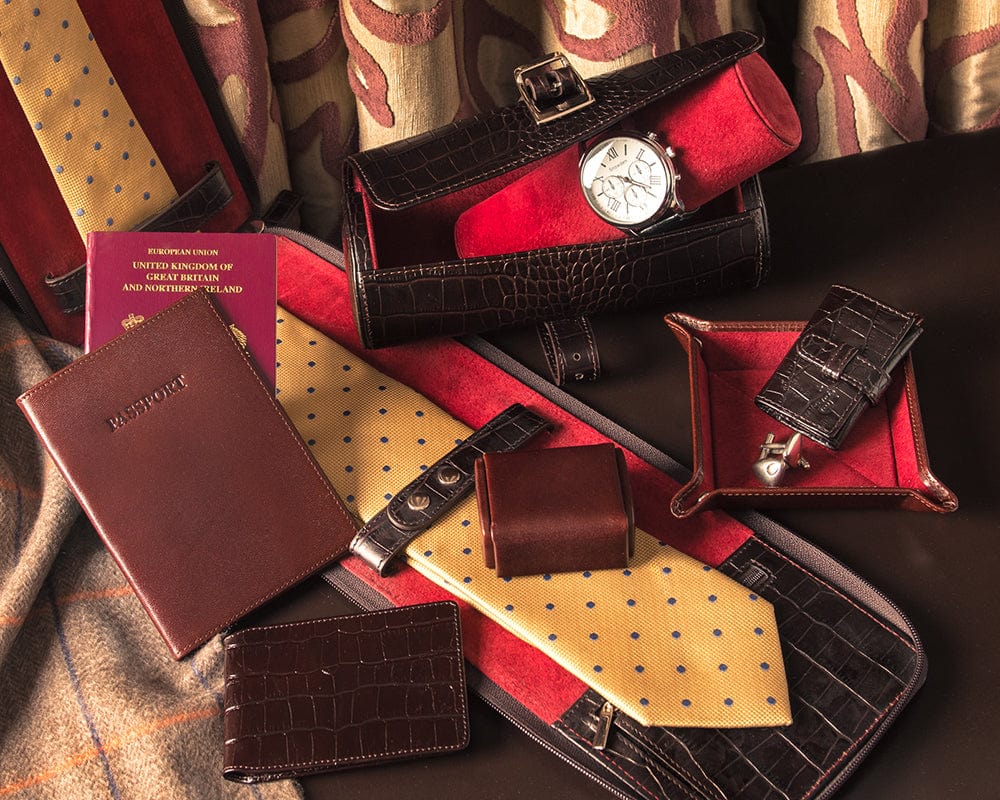 Travelling accessories includes travel backgammon rolls, luggage tags, leather passport covers, tie cases, travel wallets, travel card holders, travel trays and watch rolls to accompany you while travelling. Most of our travel accessories can be also be personalised to make an extra special gift.