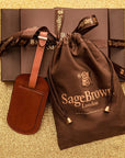 Some SageBrown luxury leather goods can be personalised with embossed initials or engraved metal components, making them a perfect gift. Embossing is available in blind, gold, or silver in Helvetica font, and engraving is done by hand.
